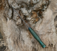 Нож Гефест из порошковой нержавеющей стали М-398 с травлением, рукоять - стабилизированный дальневосточный ясень, кожаный чехол в комплекте.