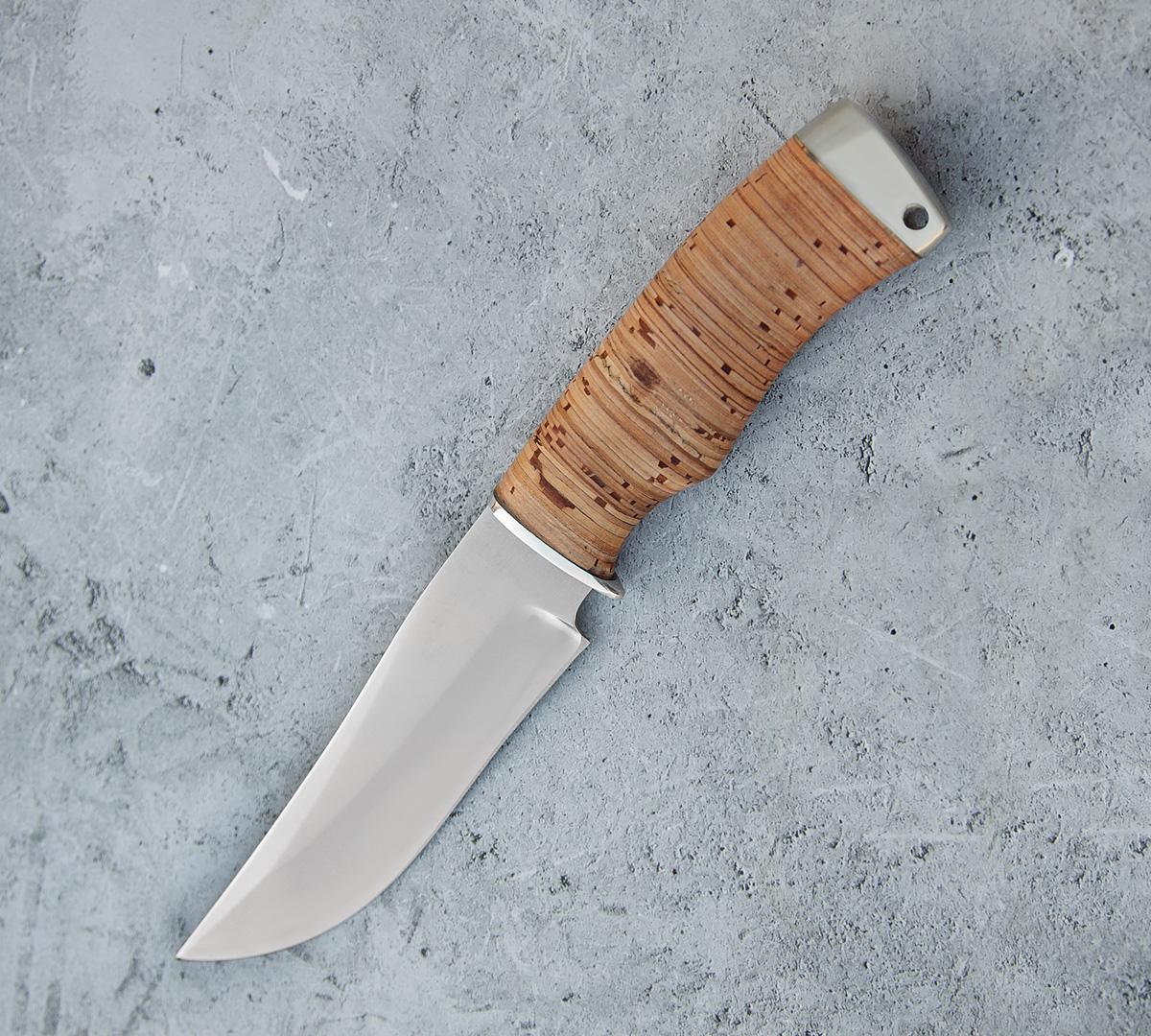 Нож Клыч из кованой стали Х12МФ, рукоять - береста, кожаный чехол идет в комплекте.